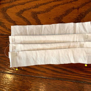 Cotton fabric, pre-washed is asked for these masks. It does not take very much fabric to make these. I traced this out onto fabric, plus mark your pleats.